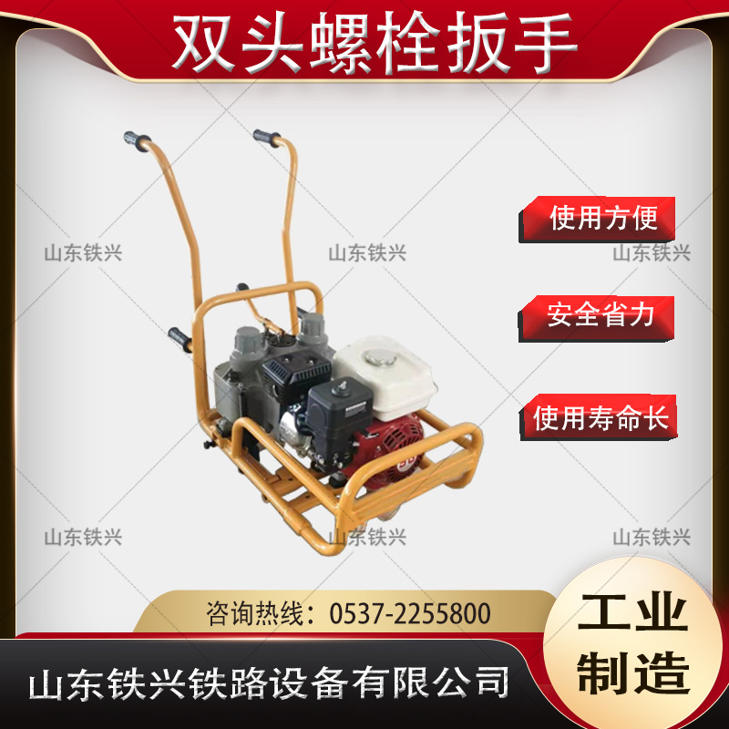 NLB-600型內(nèi)燃雙頭螺栓扳手適用于鐵路線路軌枕螺栓螺母的旋松和緊固作業(yè)。該機(jī)為雙套筒同時(shí)作業(yè),反向扭矩超大于600N·m,可以旋松各種銹蝕螺栓,工作效率高。同時(shí)改沖擊扭矩為靜扭矩,使作業(yè)過(guò)的鋼軌扣件壓力誤差小;換向靈活,控制集中,操作簡(jiǎn)便,是大量繁雜的松、緊螺栓作業(yè)不可缺少的設(shè)備。