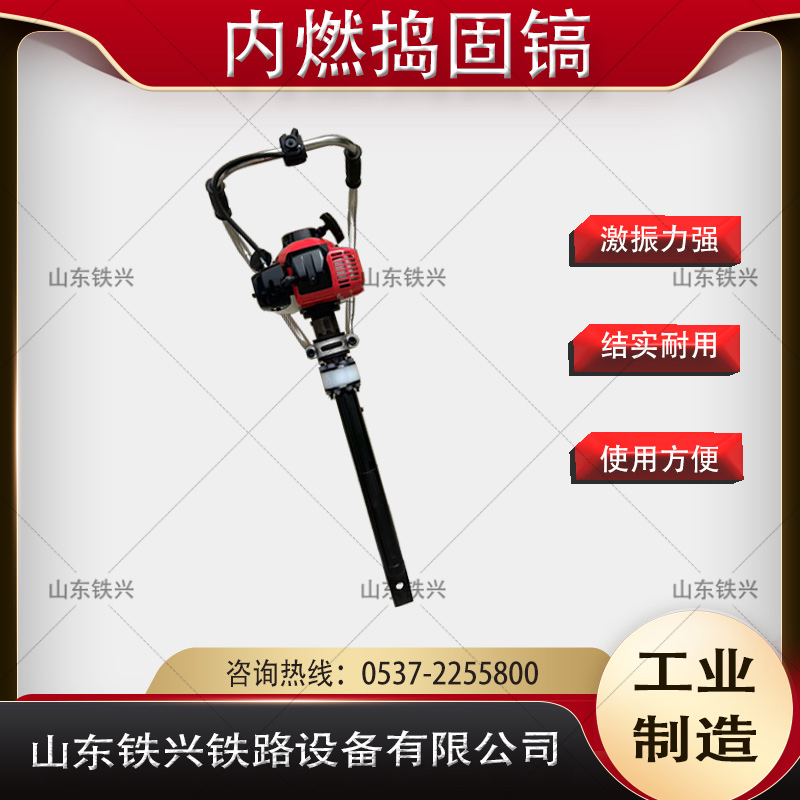 手提內燃搗固鎬合適鐵路石碴道床和其它顆粒狀物料的搗固,對線路抬道量大于30毫米以上的搗固作業,搗固質量十分理想。