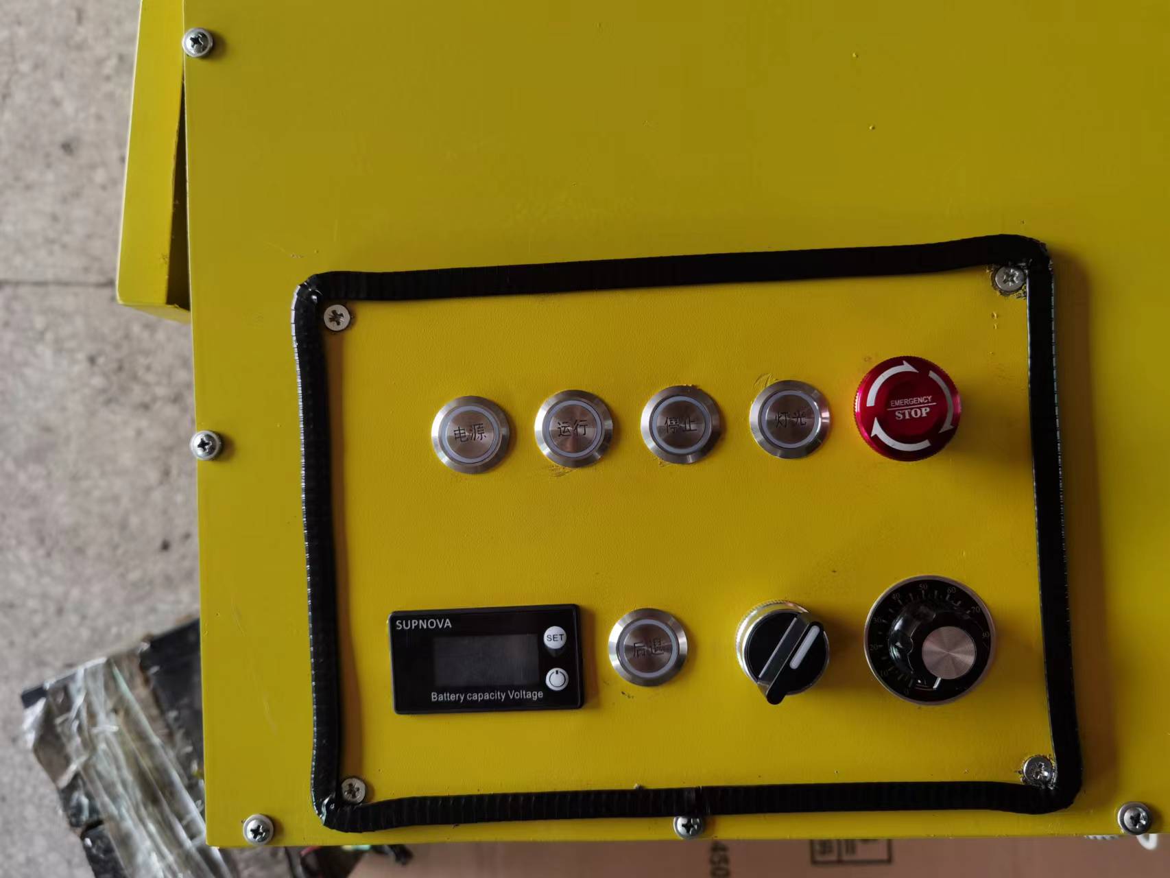 4.為了方便夜間作業還設置了照明裝置,按下燈光按鈕即可,本機還設置了急停按鍵,發生緊急事情按下急停按鈕,直接抬下道